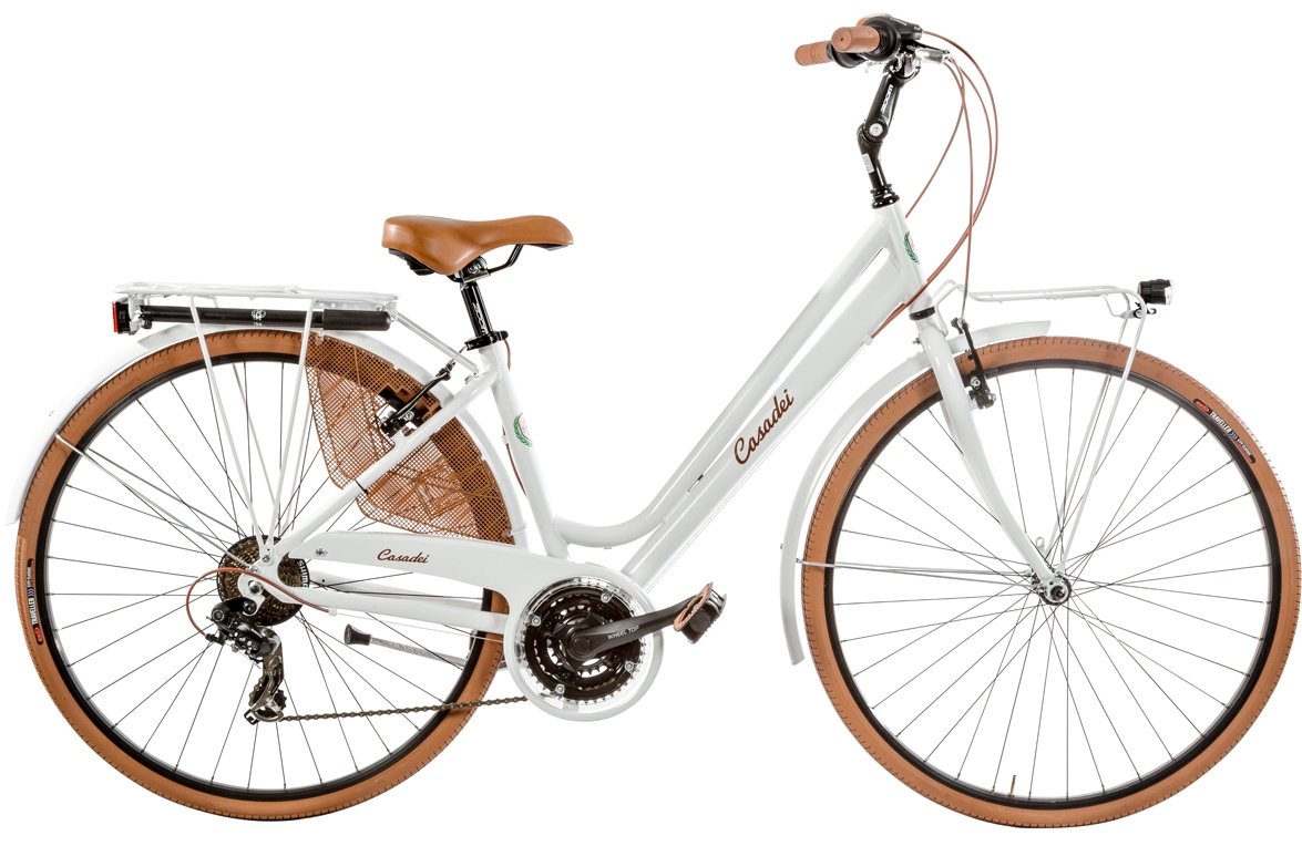 Dámsky mestský bicykel od talianskej značky Casadei. Ľahký hliníkový rám a elegantný dizajn sú tou správnou voľbou pre bicykel do mesta. Po verzii so 6 prevodmi - https://www.tocoide.sk/damsky-bicykel-casadei-vintage-6v je v ponuke aj táto verzia s 21 prevodmi.