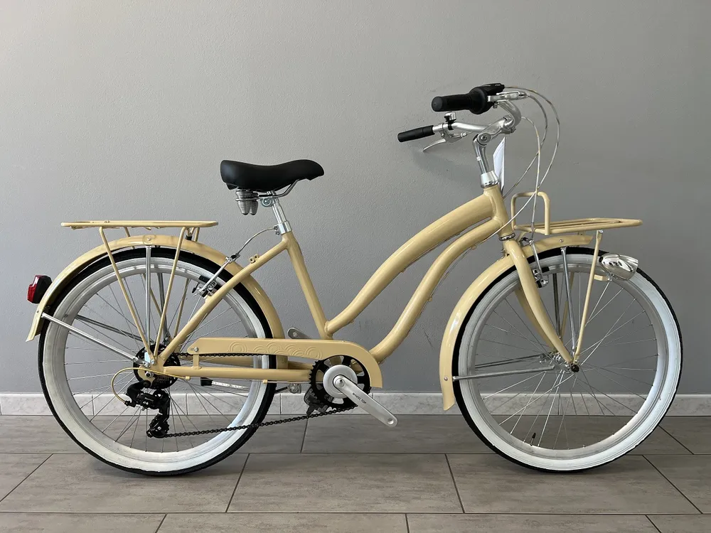 Dámsky cruiser bicykel Beach má hliníkový rám, čo zaručuje príjemnú hmotnosť bicykla. Je dostupný vo viacerých farbách a tak si tu určite nájdete tú svoju obľúbenú farbu.