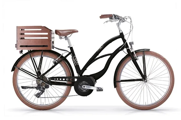 Štýlový dámsky cruiser elektrobicykel od talianskej značky MBM. Ak chcete vyniknúť a máte rada jedinečné veci, tento cruiser bicykel vás určite očarí a je práve pre vás. Buďte neprehliadnuteľná štýlová mestská cyklistka.