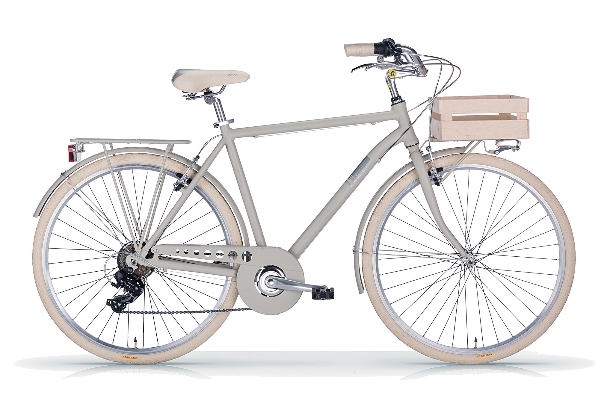 Elegantný pánsky bicykel od talianskej značky MBM. Ponúkaný je v troch rôznych farbách v kombinácii s krémovými doplnkami. Tento pánsky bicykel má štýl, vysokú kvalitu a ponúka maximálne pohodlie. Bicykel je v kompletnej výbave a netreba na neho už nič dokupovať. Má hliníkový rám, vďaka čomu je veľmi ľahký a celková váha je len 13 kg.