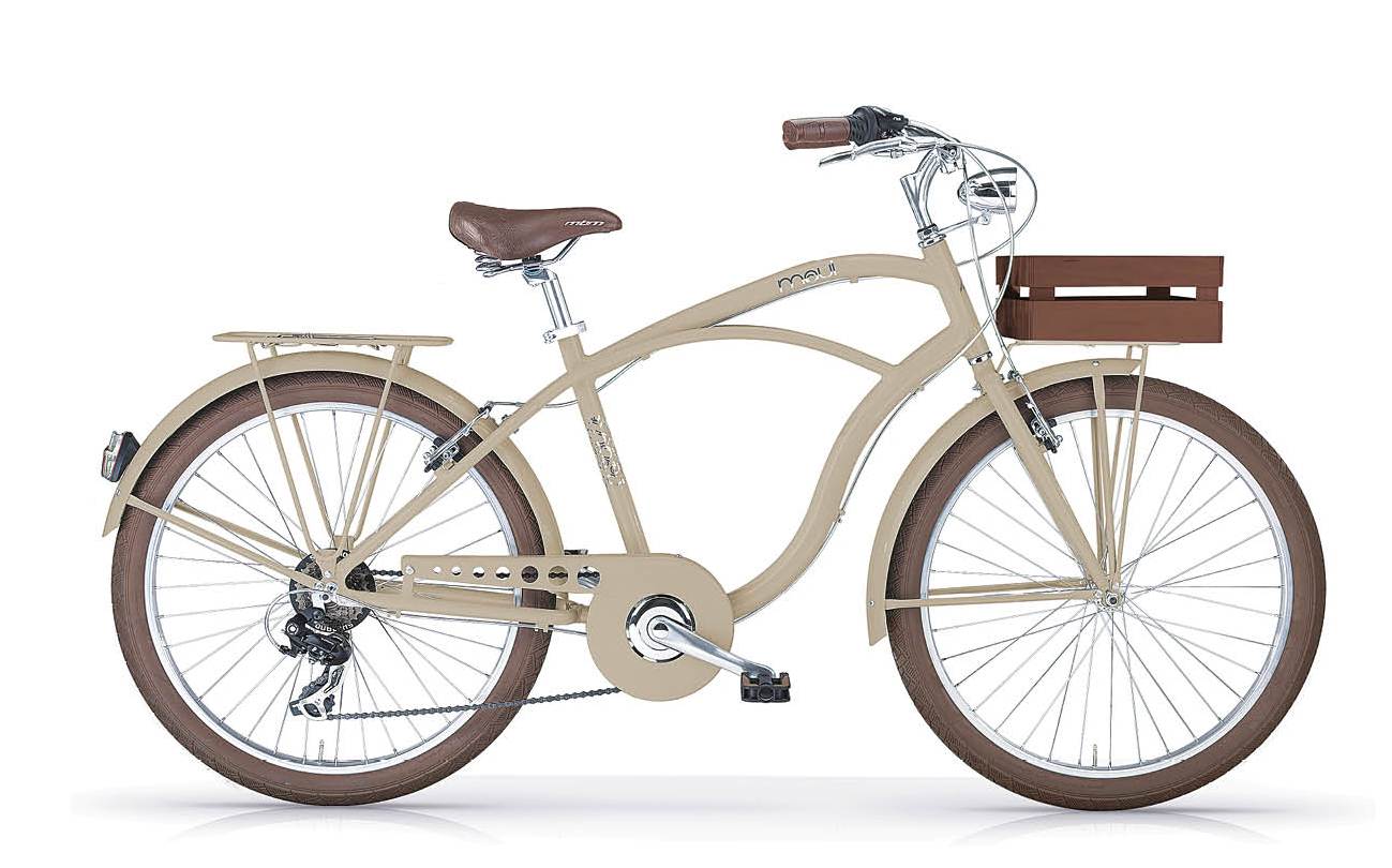 Pánsky cruiser bicykel Maui 26 Štýlový pánsky cruiser bicykel od talianskej značky MBM. Po type Honolulu máme v ponuke ďalší štýlový pánsky cruiser bicykel. Typ Maui je dostupný v troch farbách – čiernej, krémovej a zelenej. Kombinovaný je s hnedými doplnkami, čo umocňuje jedinečný štýl bicykla. Nav... celý popis