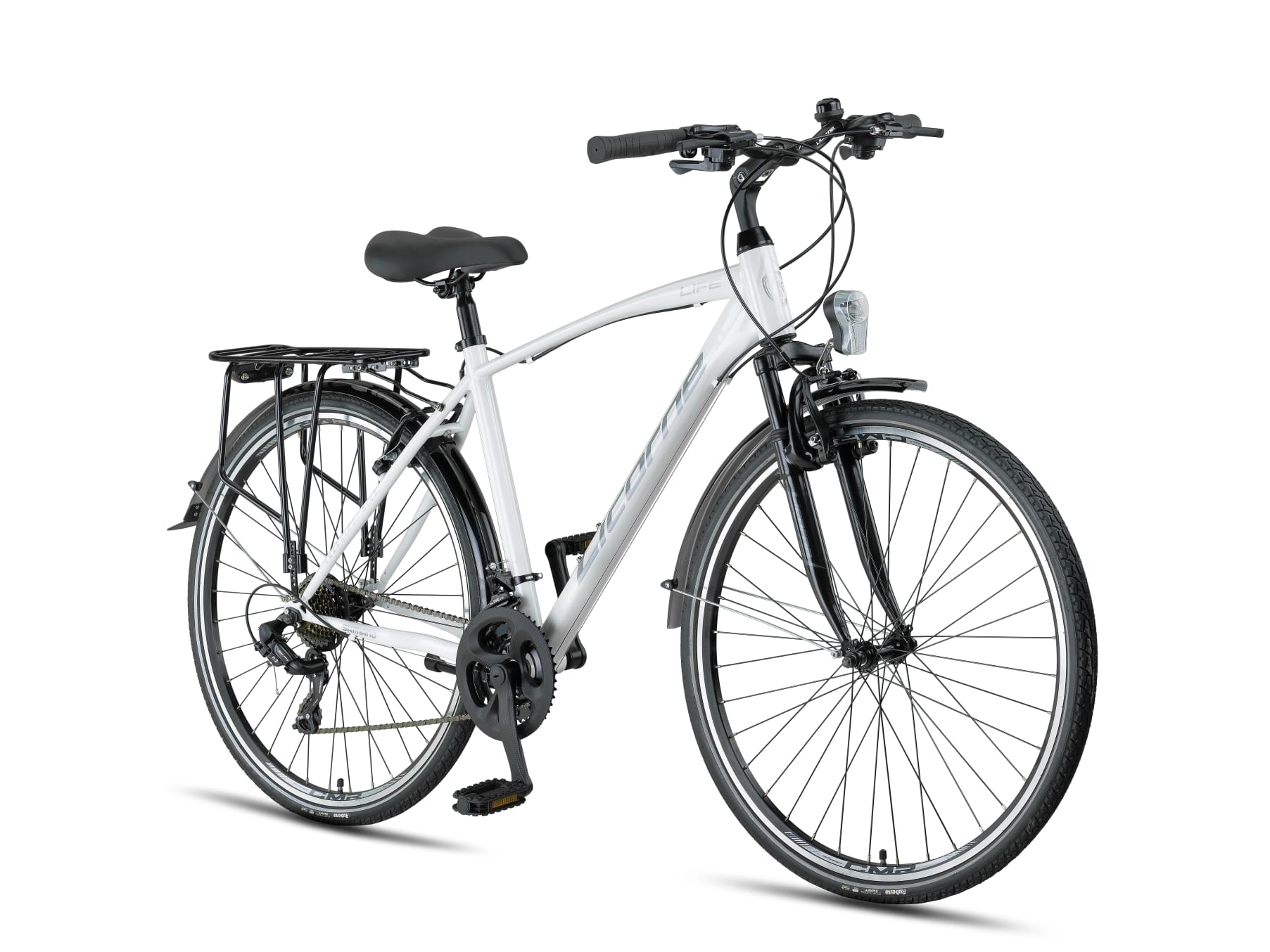 Bicykel Life má odolný oceľový rám, odpruženú vidlicu, kotúčové brzdy a 21 prevodov pre čo najpohodlnejšiu jazdu pri všetkých jazdných podmienkach.