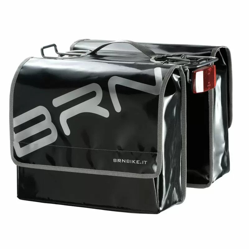 Obojstranná taška na zadný nosič bicykla z nepremokavého, vodoodolného materiálu.